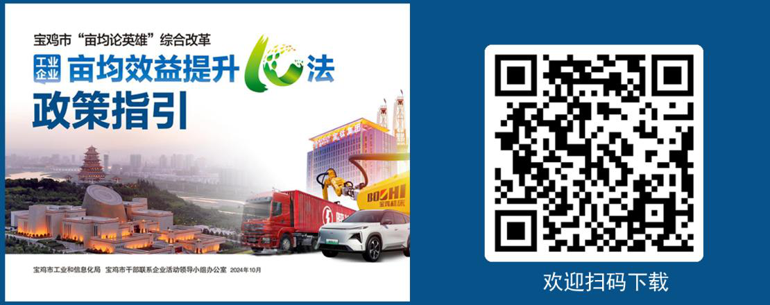三是将“亩均论英雄”综合改革与宝鸡工业发展实际相结合,因地制宜帮扶企业提升亩均效益。本次发布的《工业企业亩均效益提升十法政策指引》,坚持从实际出发,因地制宜引导企业提升亩均效益水平,例如第八种方法“集聚入园法”,整合了全市15个特色产业园信息,并提供招商联系人电话和招商手册二维码,企业扫码即可下载查阅各园区详细招商信息,引导符合产业定位和行业准入标准的中小企业入园集聚发展,让企业转型有方向、发展有信心。