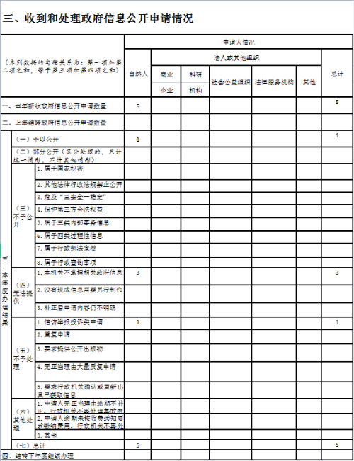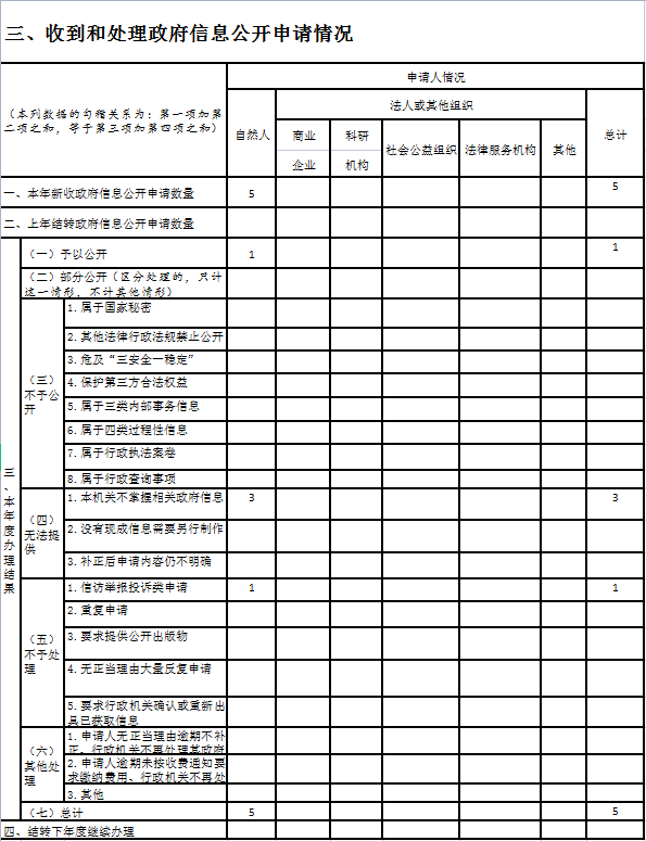三、收到和处理政府信息公开申请情况