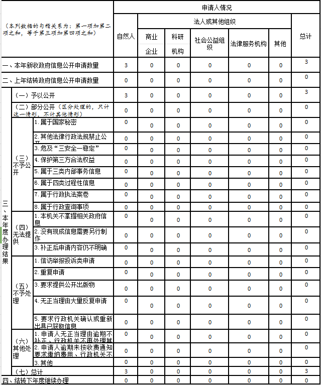 三、收到和处理政府信息公开申请情况