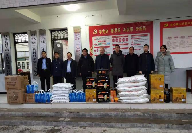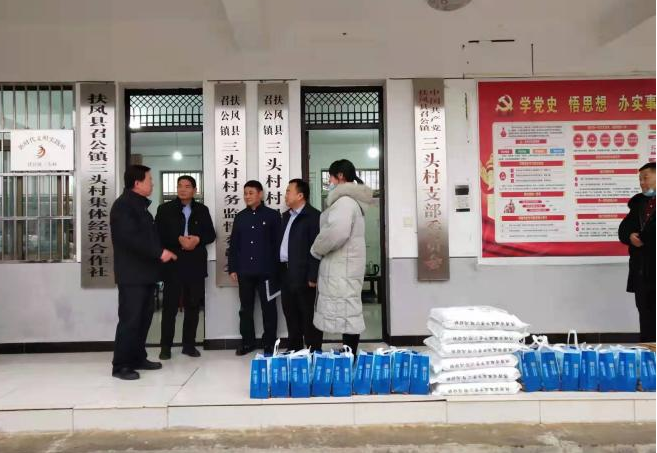 1月25日,市工信局党组书记、局长巨绪昌带领三级调研员闫孟涛、局属的市工业发展促进中心主任刘建利、市军民融合服务中心主任张立、市盐务中心主任陆昭霖,深入帮扶的扶风县召公镇三头村开展春节走访慰问活动,为村上送去米面油、碘盐等春节慰问品,以及口罩、消毒洗手液等防疫物资。