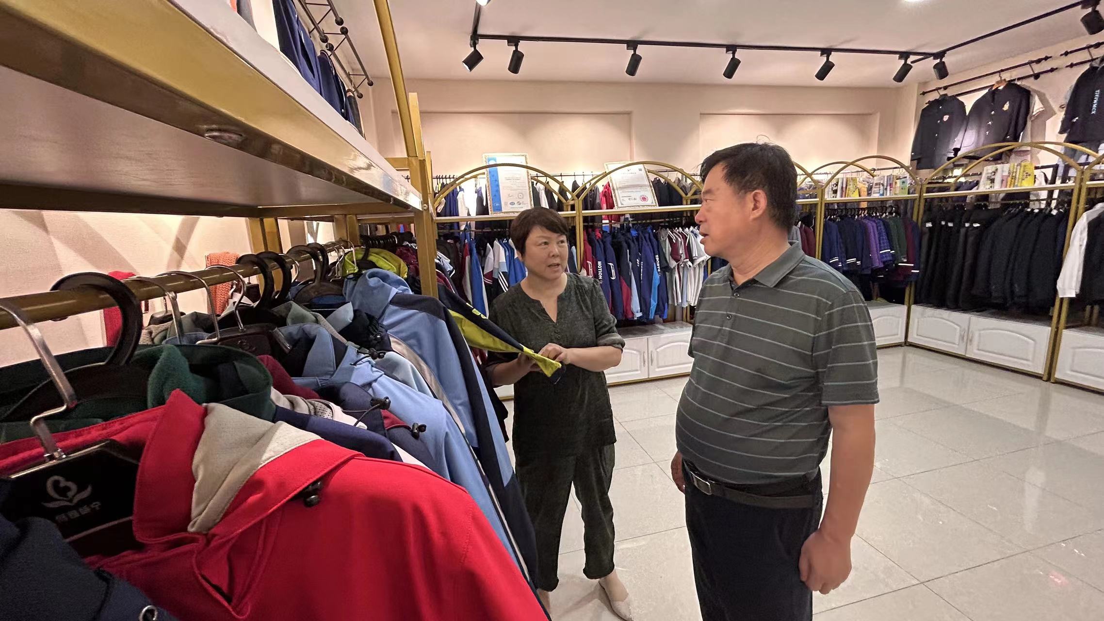 在陕西博雅服饰科技有限公司,巨局长勉励企业要擦亮专精特新和省级工业精品品牌,加大宣传营销力度,争当全省服装行业校服生产排头兵!同时要求企业持续做好安全生产工作。