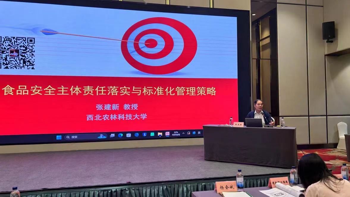 培训环节,由国家市场总局食品安全普法宣讲团讲师、西北农林科技大学张建新教授进行授课。张教授围绕食品工业企业诚信管理体系、食品安全标准以及产业发展趋势等方面为大家系统讲解,给参会人员带来了许多宝贵的启发和思考。