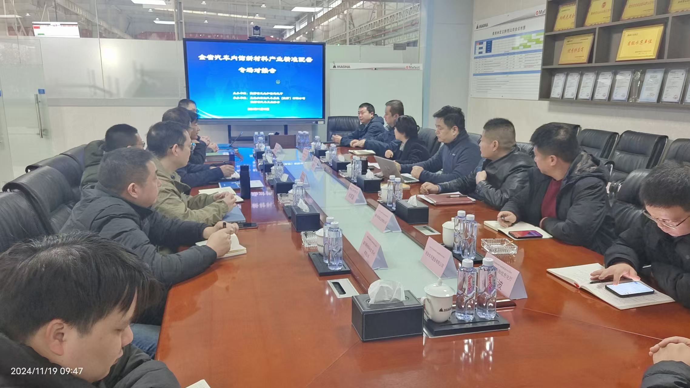 2024年11月19日上午,省工信厅汽车处、省汽车协会在宝鸡麦格纳宏立公司举办全省汽车内饰新材料产业精准配套专场对接活动。山西晨虹新材料、江苏迪马新材料及省内陕西华源智行汽车材料、西安东风塑业等7户企业参加了活动。